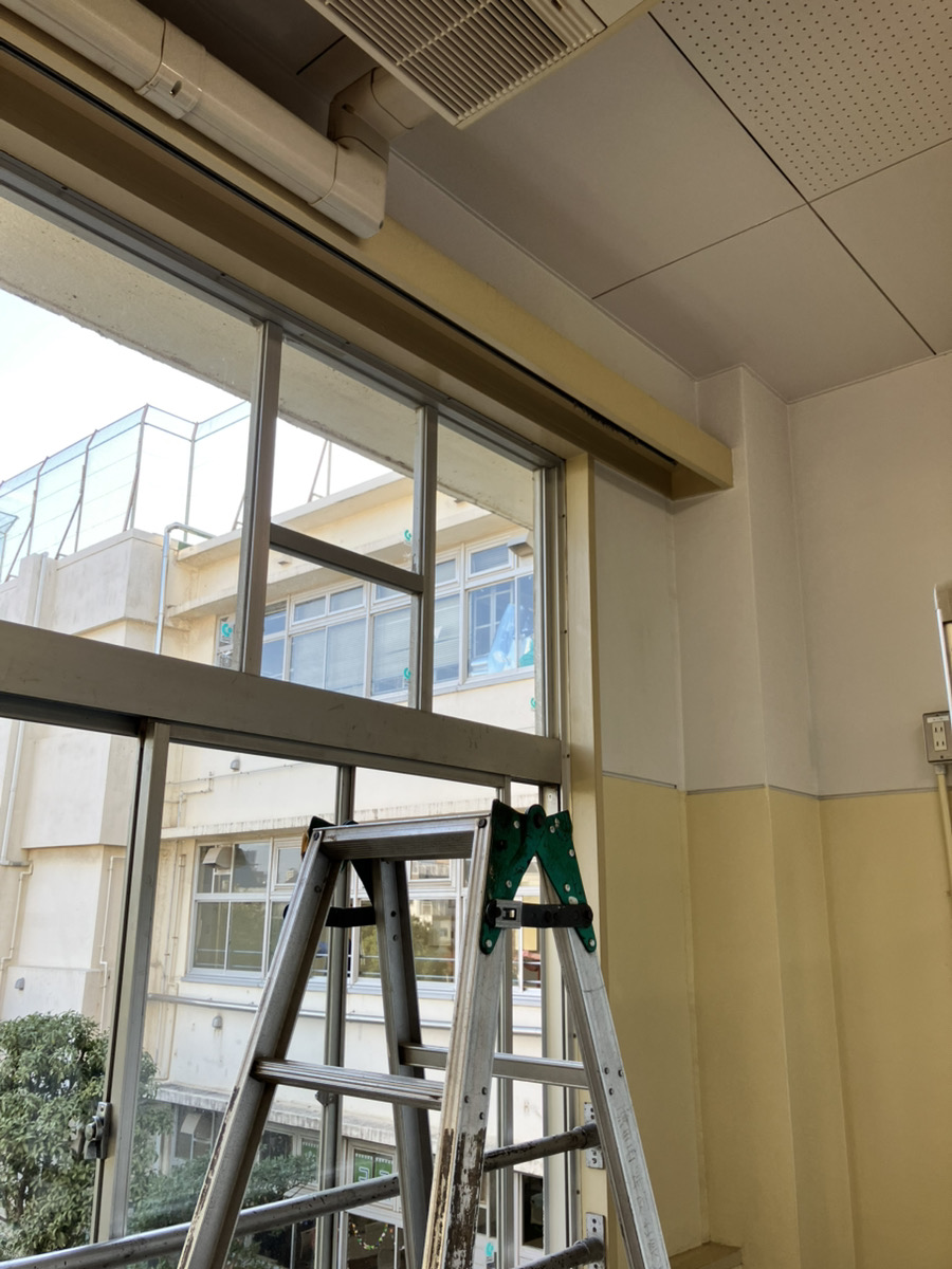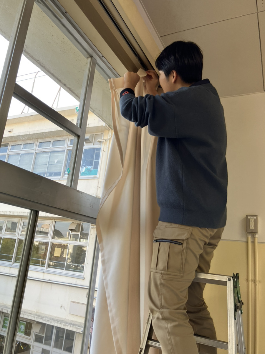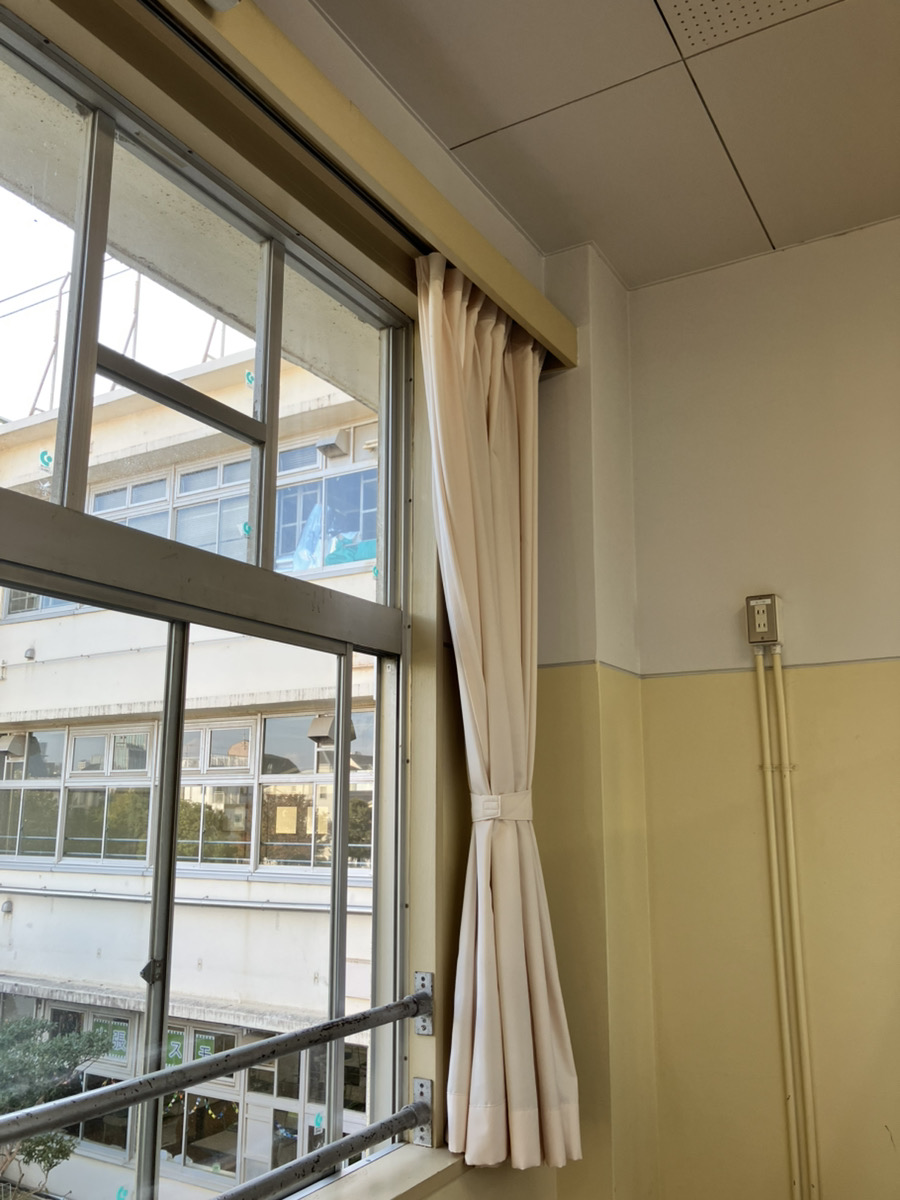 脚立の使用が社員しかできないためカーテンを取り付けました。