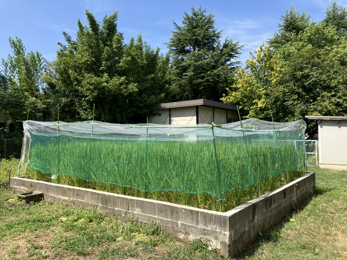 学校の生徒さんが育ている稲に防鳥ネットを張りました。